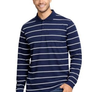 Full Sleeves Polo Collar Tshirt for Men with Pocket || Stripe Collar and Pocket Tshirt for Men Long Sleeves Navy Blue