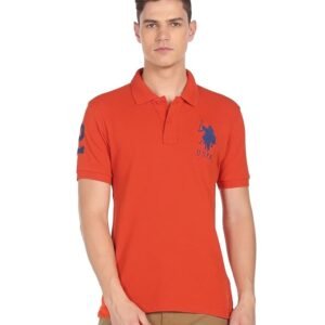 U.S. POLO ASSN. Men's Cotton Solid Slim Fit Polo Shirt (USTSHC0063_DK. Orange L)
