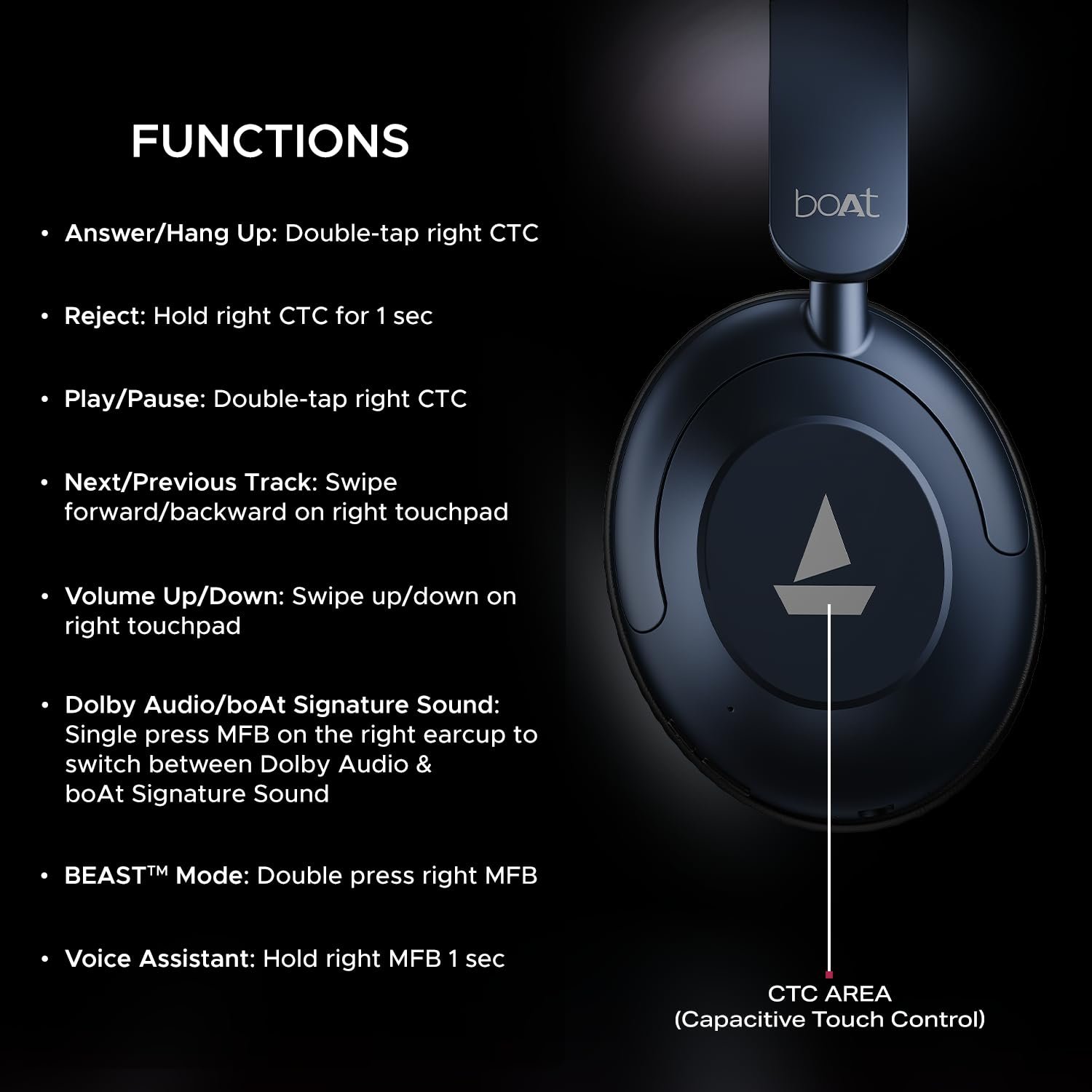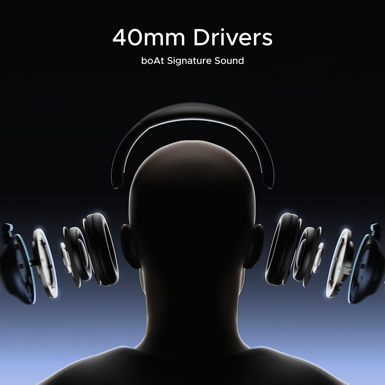 • 40mm Drivers: Listen to thumping audio with the 40mm drivers in these headphones. Bass-rich boAt Signature Sound from the dual drivers is bound to amplify your listening experience to the next level.