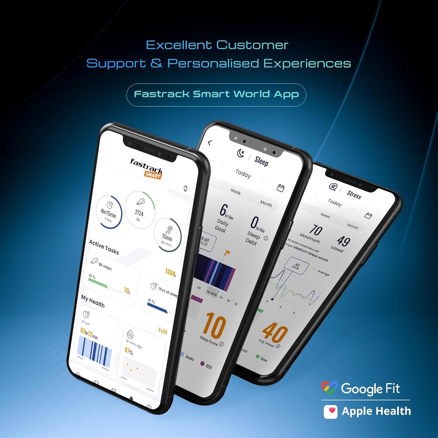 - Complete Health Suite On Wrist – Monitor SpO2, BP, 24×7 heart rate, REM sleep, stress, mood & breathing rate; also includes hydration alert & women’s wellness tracking