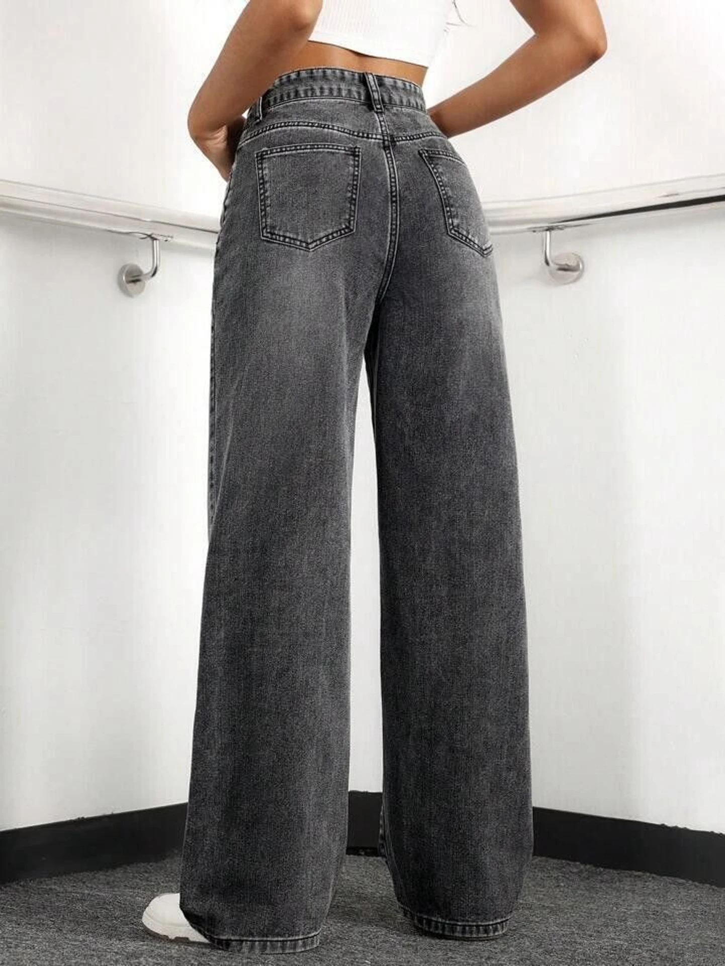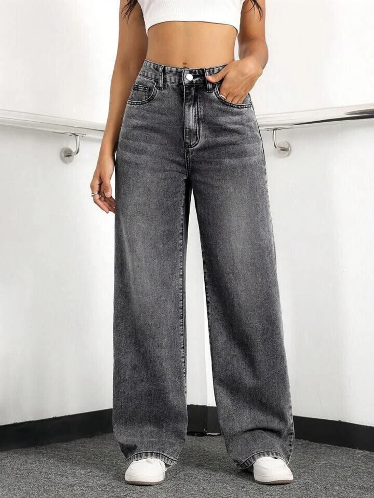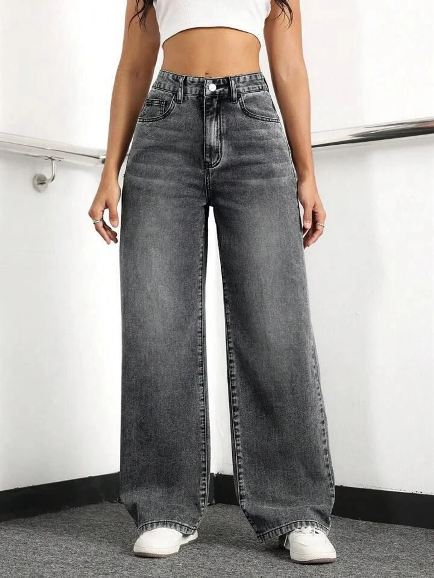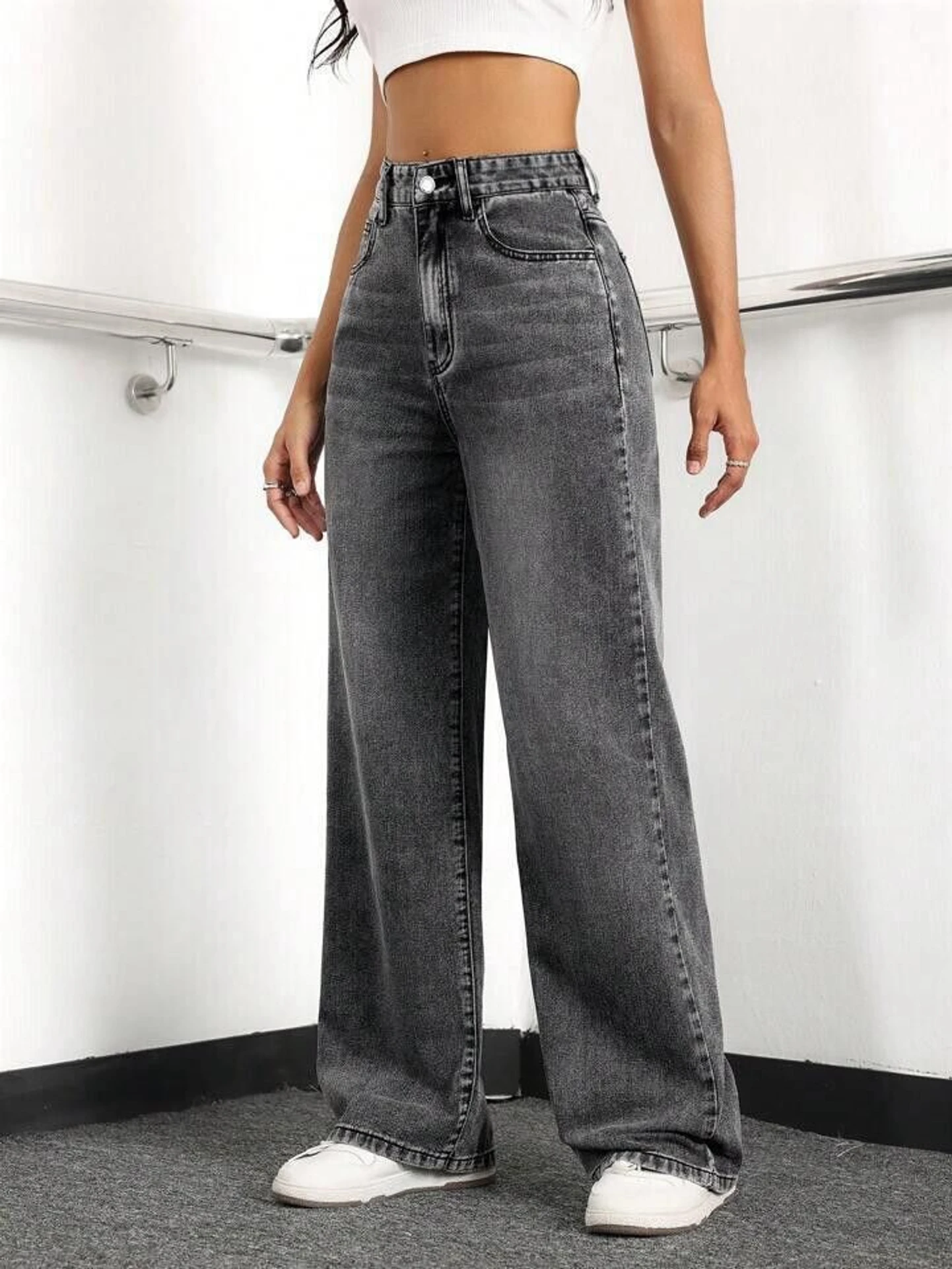 GK JOHN Women’s Straight Fit High Rise Jeans – Grey Casual Denim Pants