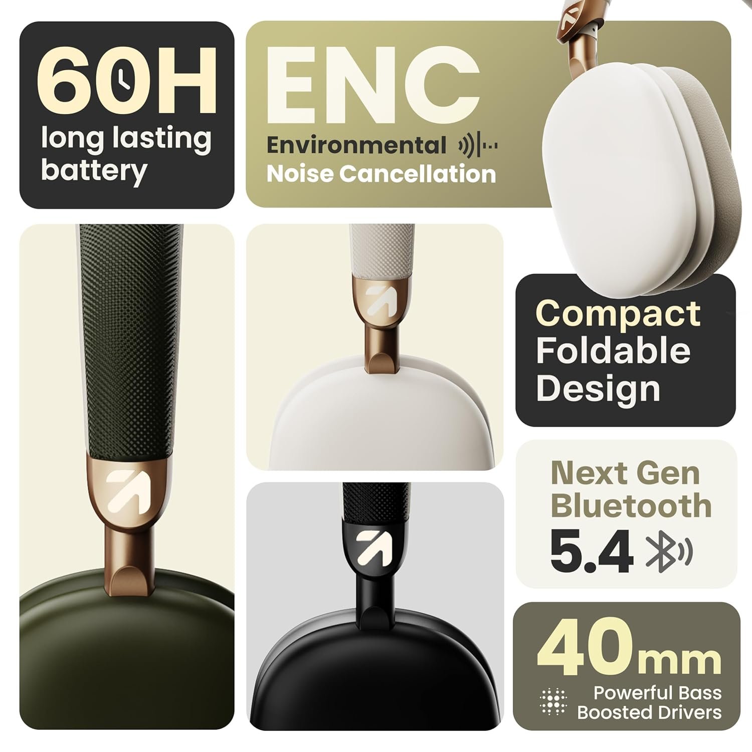 • 40mm Bass-Boosted Drivers – Enjoy immersive sound with deep bass and sharp treble, powered by 40mm powerful drivers—perfect headphones for music, movies, and gaming.