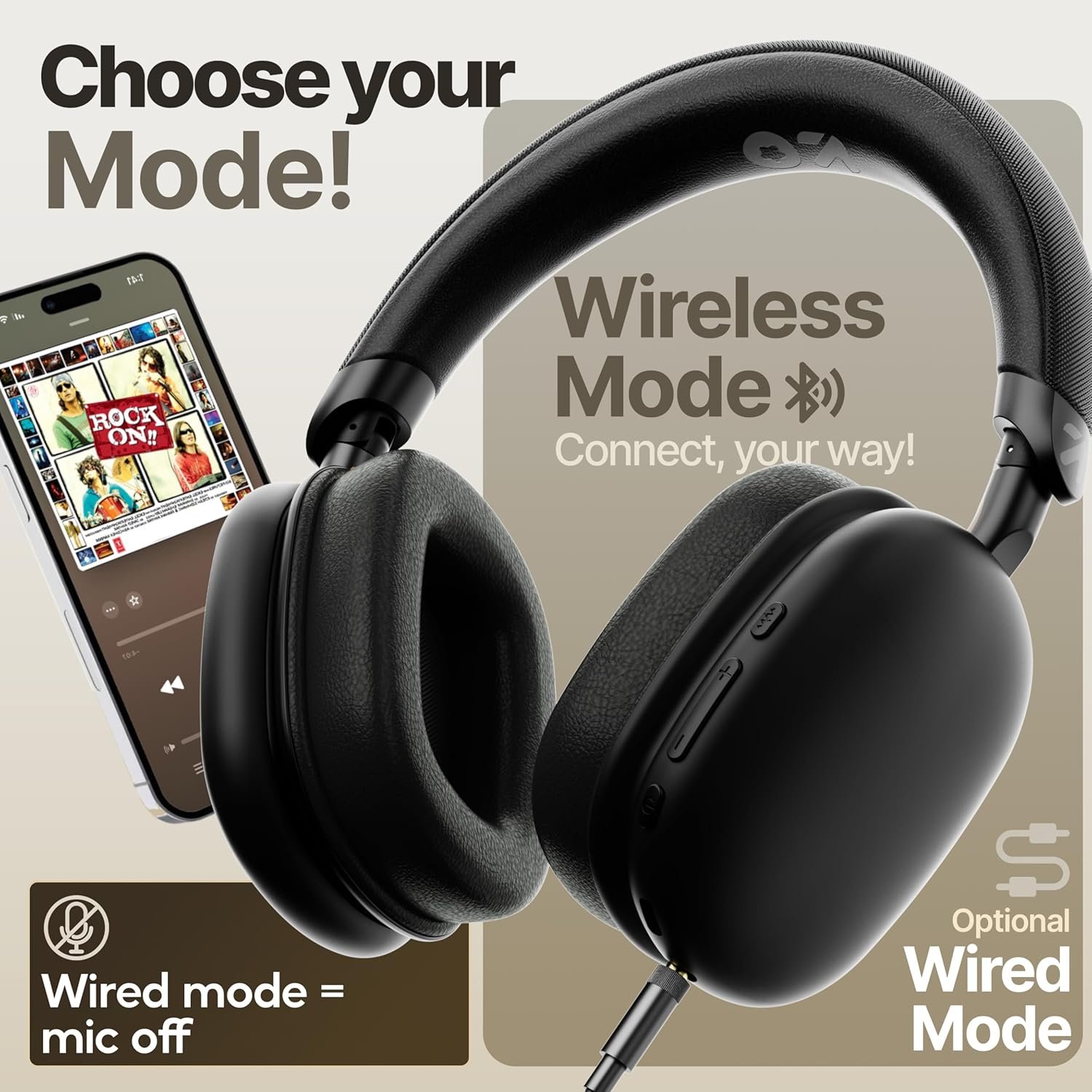 GOBOULT Fluid X Headphones Bluetooth Wireless with 60H Playtime, 40mm Drivers, Zen ENC Mic, Type-C Charging, Combat™ Gaming, BTv 5.4, Headphones Wireless with mic (Jet Black)
