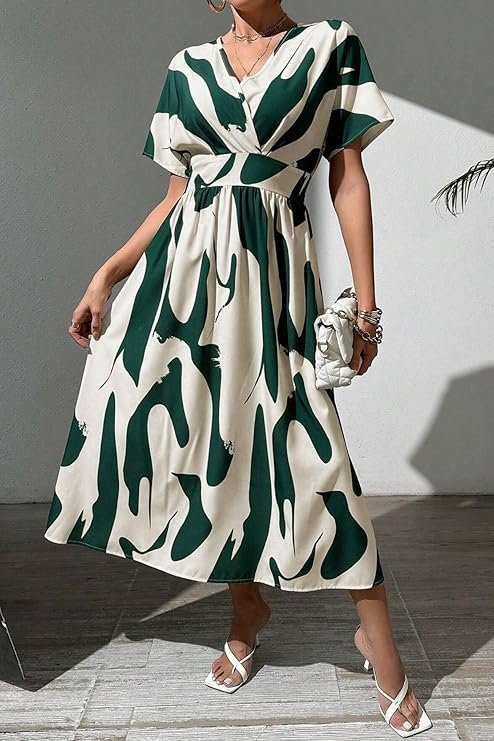 Leriya Fashion Women’s Printed Maxi Dress – Stylish Long Flared Summer Dress for Casual & Holiday Wear