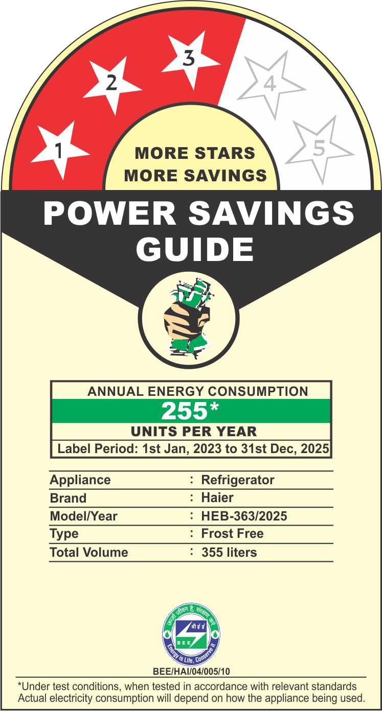 | Annual Energy Consumption | 255 Kilowatt Hours Per Year |