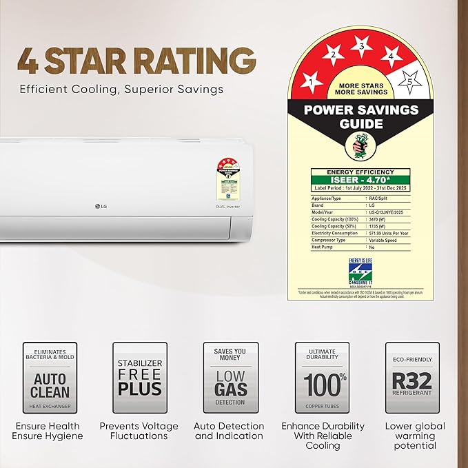 LG 1 Ton 4 Star DUAL Inverter Split AC (Copper, AI Convertible 6-in-1 with VIRAAT Mode, Faster Cooling & Energy Saving, 4 Way Swing, HD Filter with AntiVirus Protection, US-Q13JNYE, White)