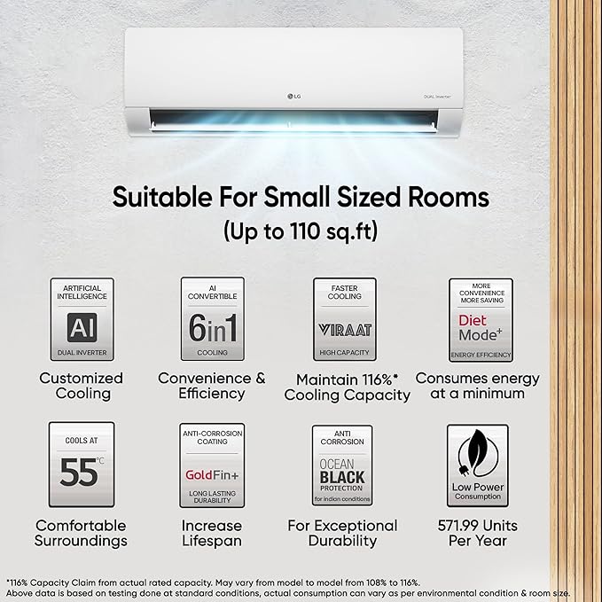 LG Split AC with Dual inverter compressor: Experience powerful cooling with LG Split AC, featuring an energy-efficient inverter compressor for optimal performance and long-lasting durability.